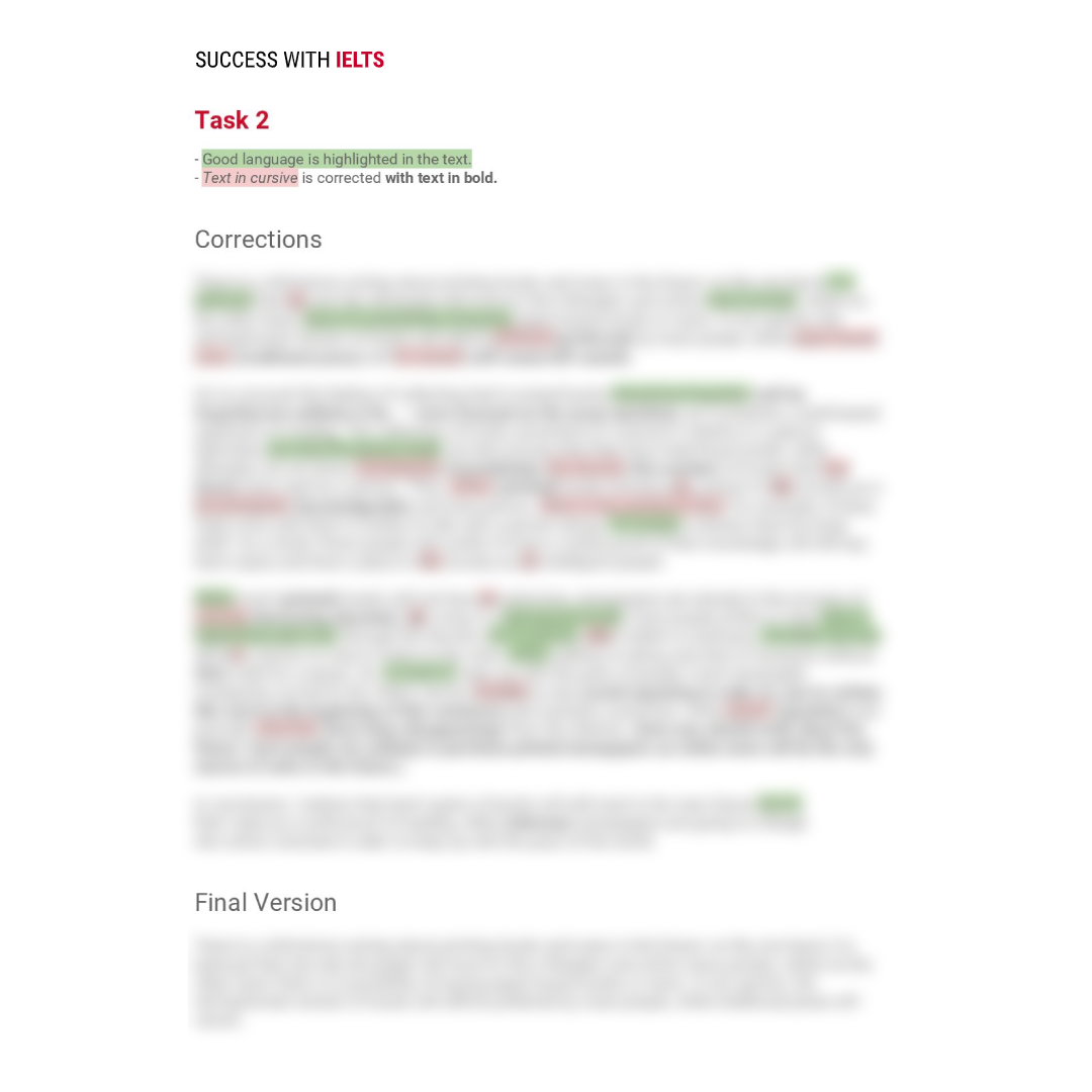 You can request tasks for Part 1, Part 2 or both together for either General or Academic IELTS. We will check your work and send detailed feedback
