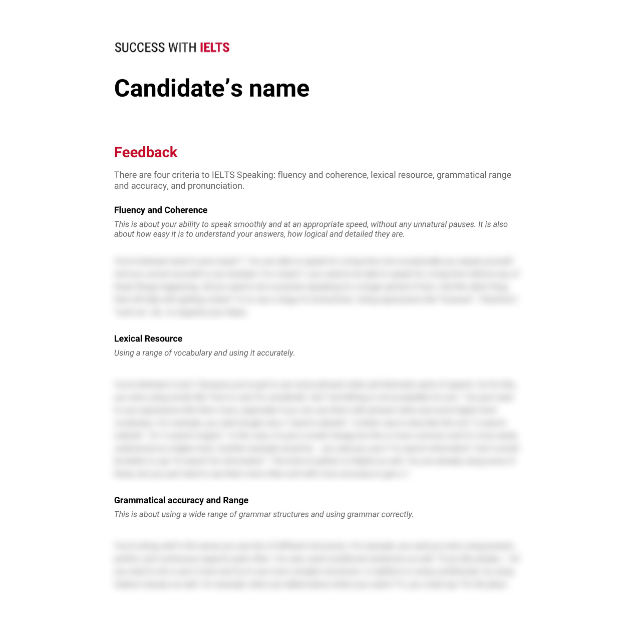 You will do a full IELTS speaking test as it is in the exam. The teacher will then provide you with detailed feedback on the language used and give advice on what could be improved and how it could be done.